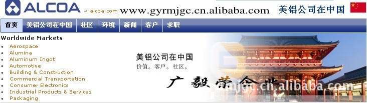Alcoa is a world leader in the production and management of primary aluminum, aluminum products and aluminum combination, through active and involved in all major aspects of the industry. Alcoa serves aerospace, automotive, packaging, building and construction, commercial transportation and industrial markets, design, engineering, production capacity, Guang Yi Rong Mei aluminum company's enterprise customer. In addition to aluminum products and components including flat-rolled products, hard alloy extrusion, forging, Alcoa aluminum market? Wheels, fastening systems, precision castings, and building systems. More information is available in the www.www.ascen.cn